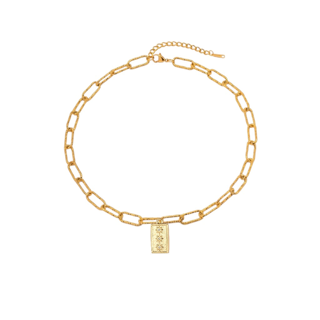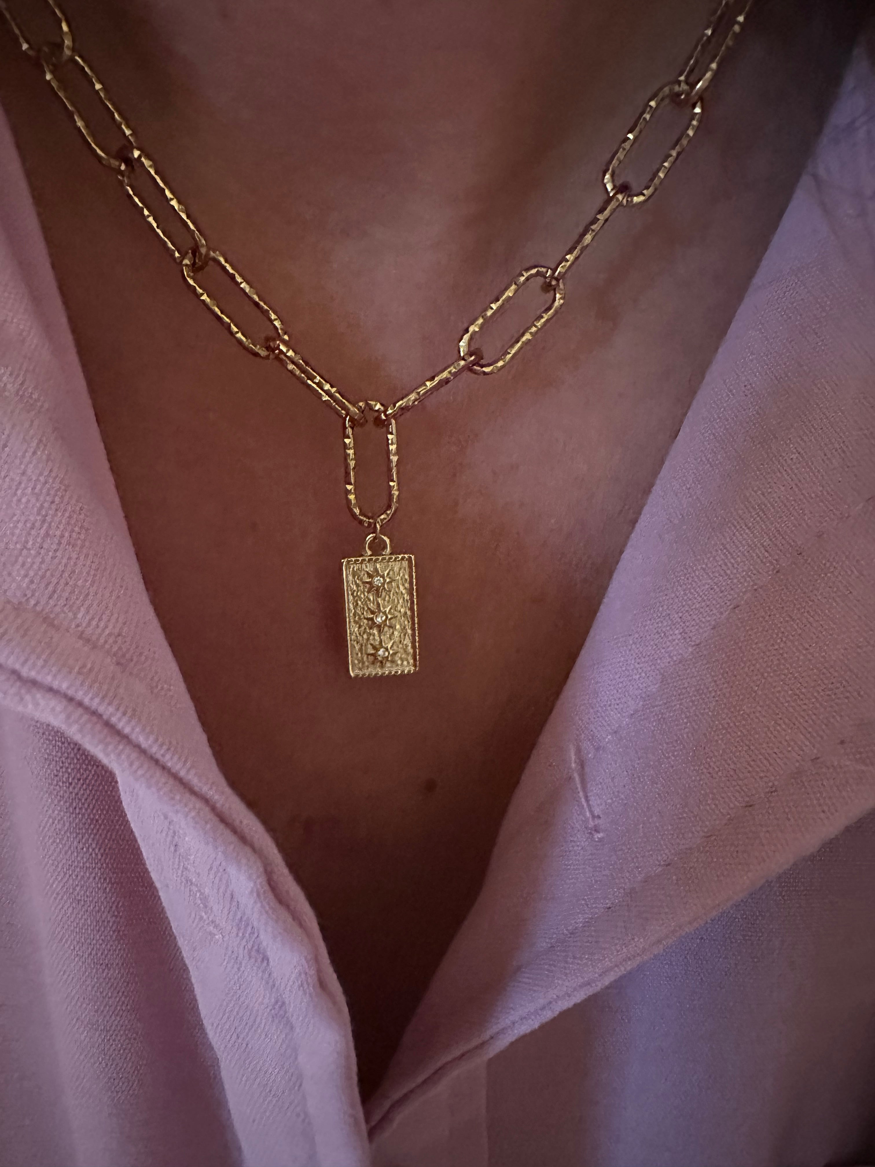 - Aflangt vedhæng med tre små Zirconkrystaller, som symbolisere Tro, Håb & Kærlighed