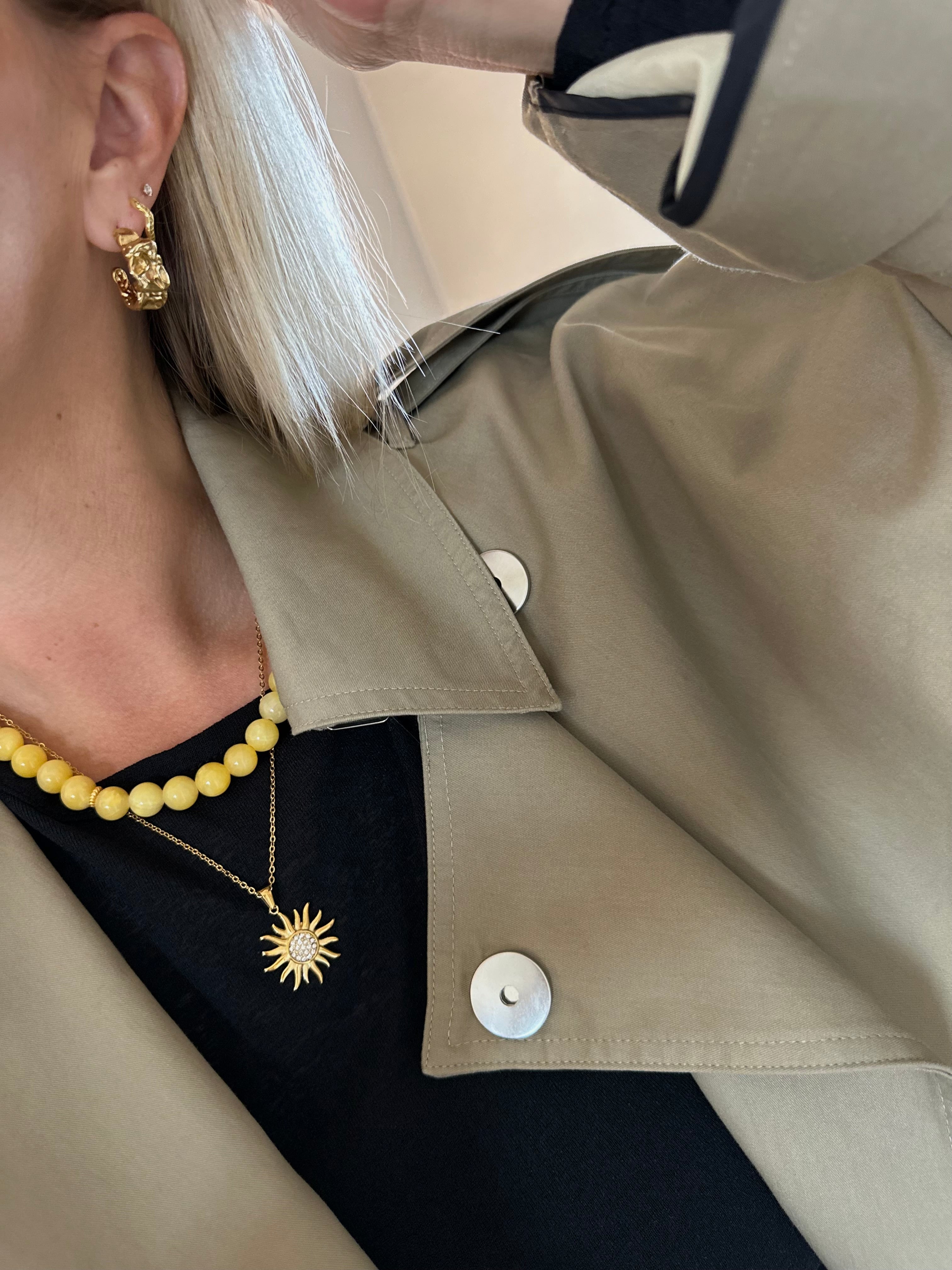 - Smuk og elegant halskæde med en sol som vedhæng, solen er indgraveret med små fine zirconkrystaller