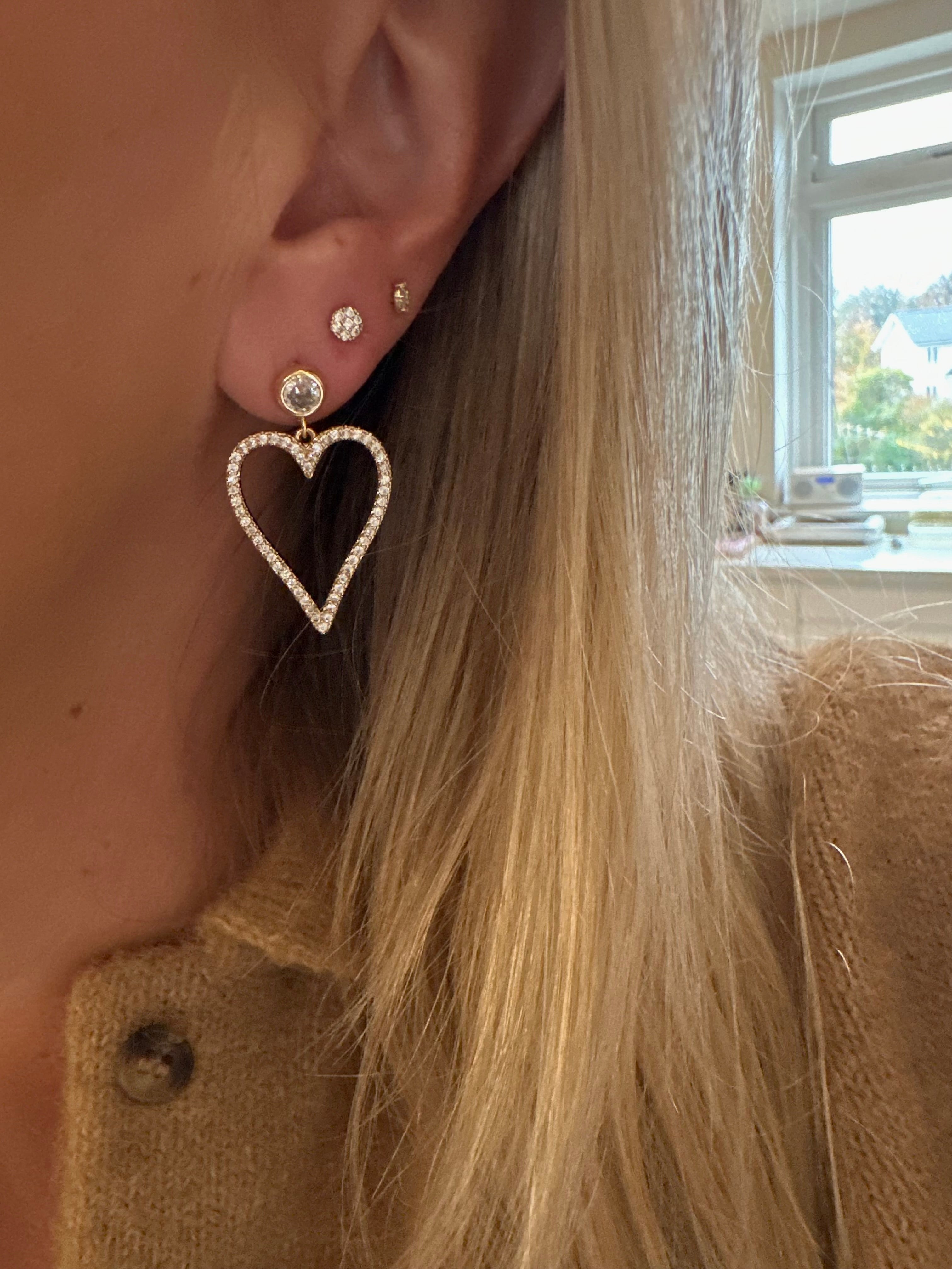 - Smukke og feminine hjerte øreringe som er indgraveret med små fine Zirconkrystaller