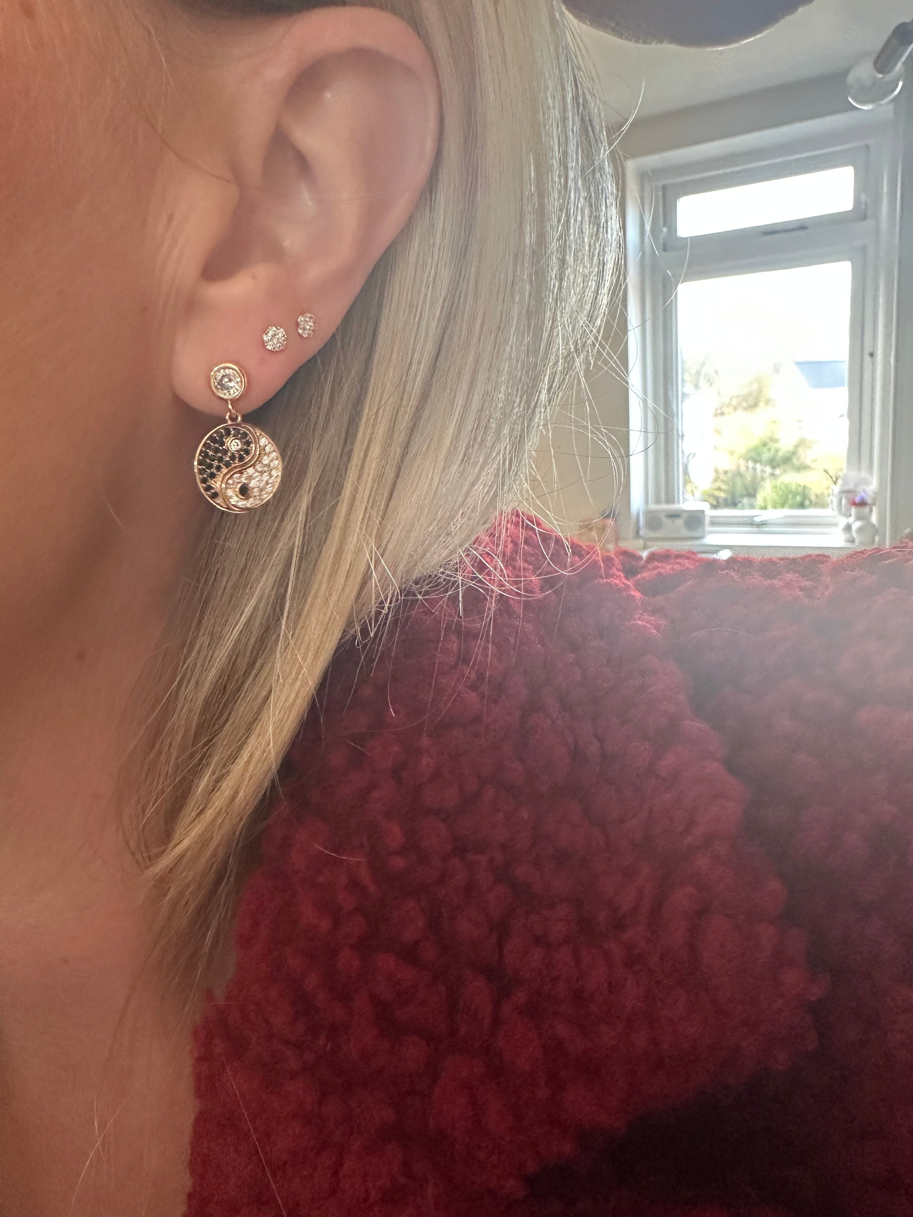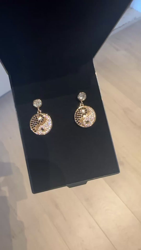 - Cool Yin & Yang øreringe som er indgraveret med små fine zirconkrystaller