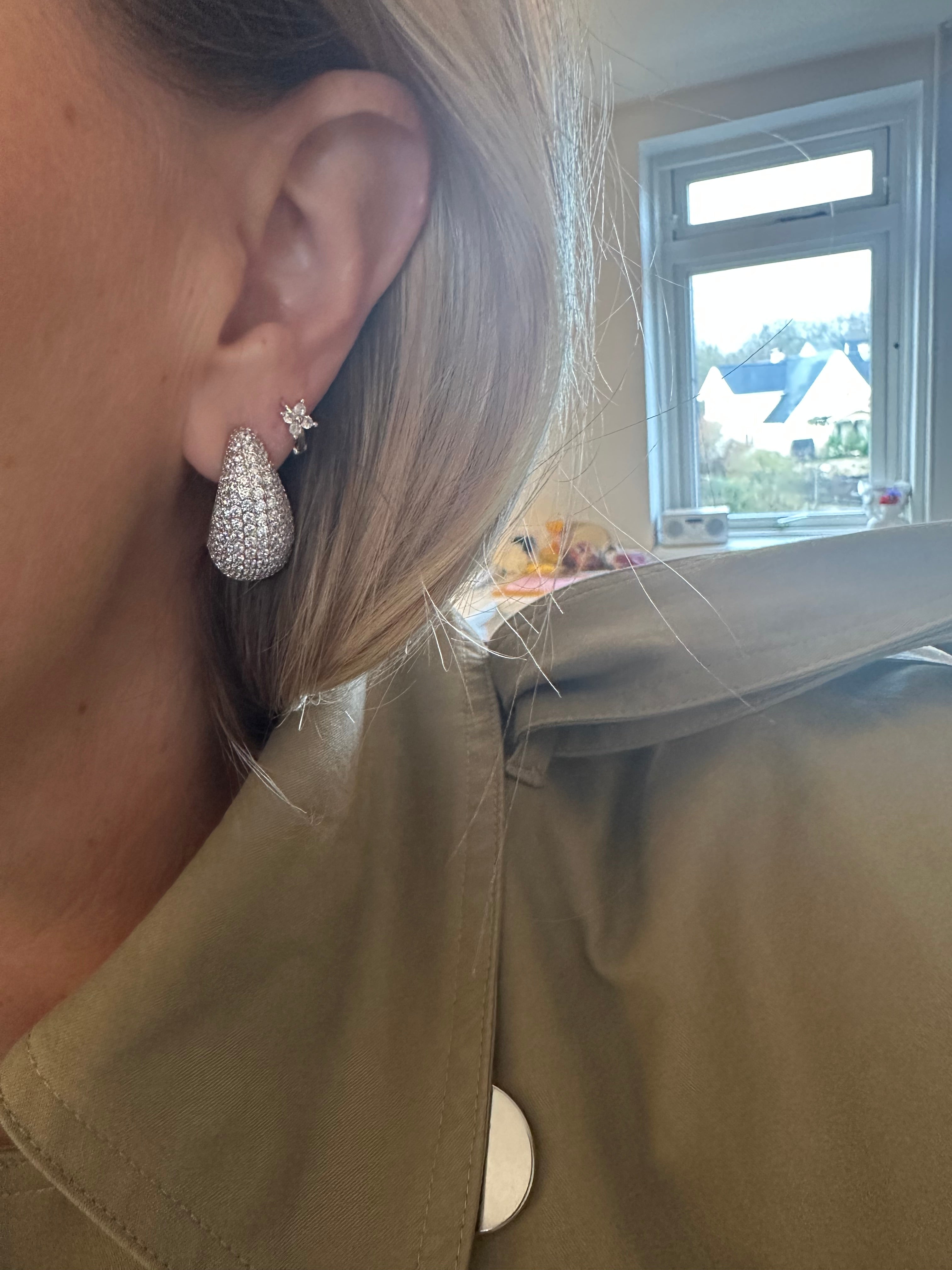 • Smukke dråbe øreringe som er indgraveret med små fine zirconkrystaller