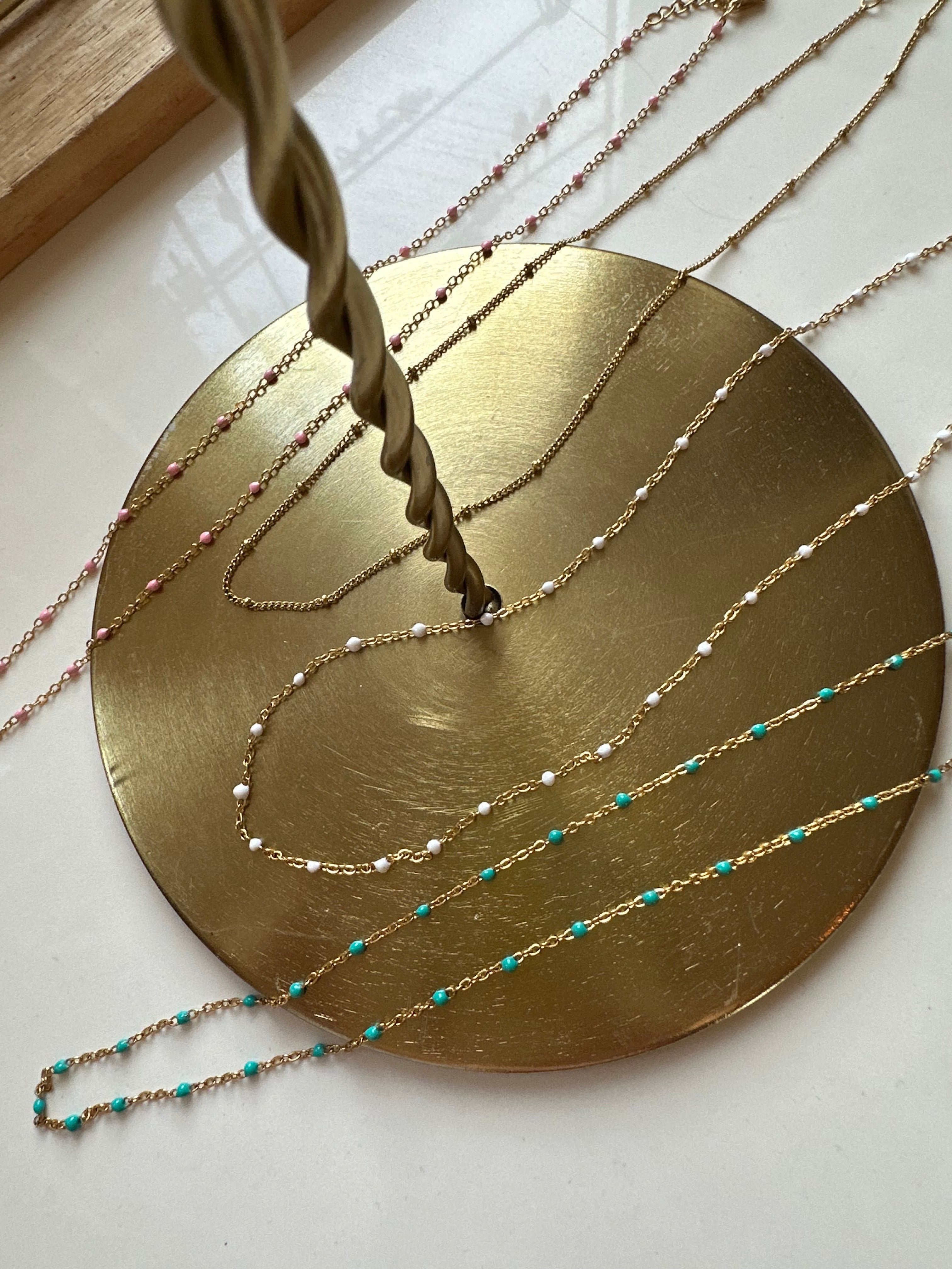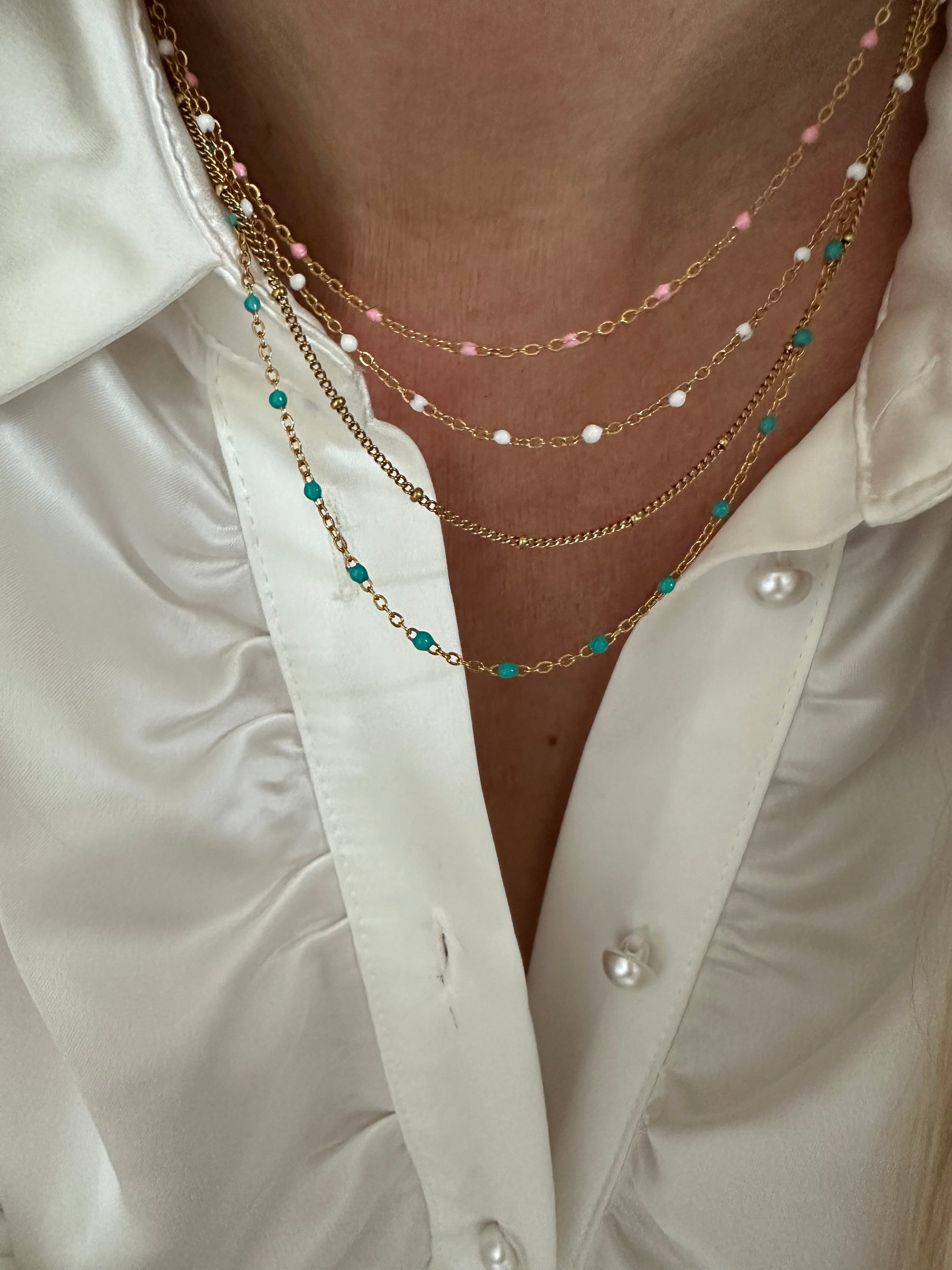 Emalja Halskæder - Rosa, hvid, grøn og turkis blå