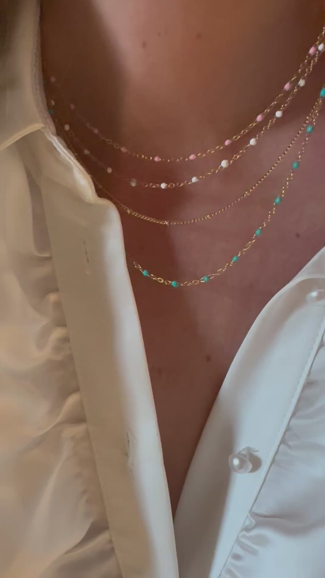 Emalja Halskæder - Rosa, hvid, grøn og turkis blå