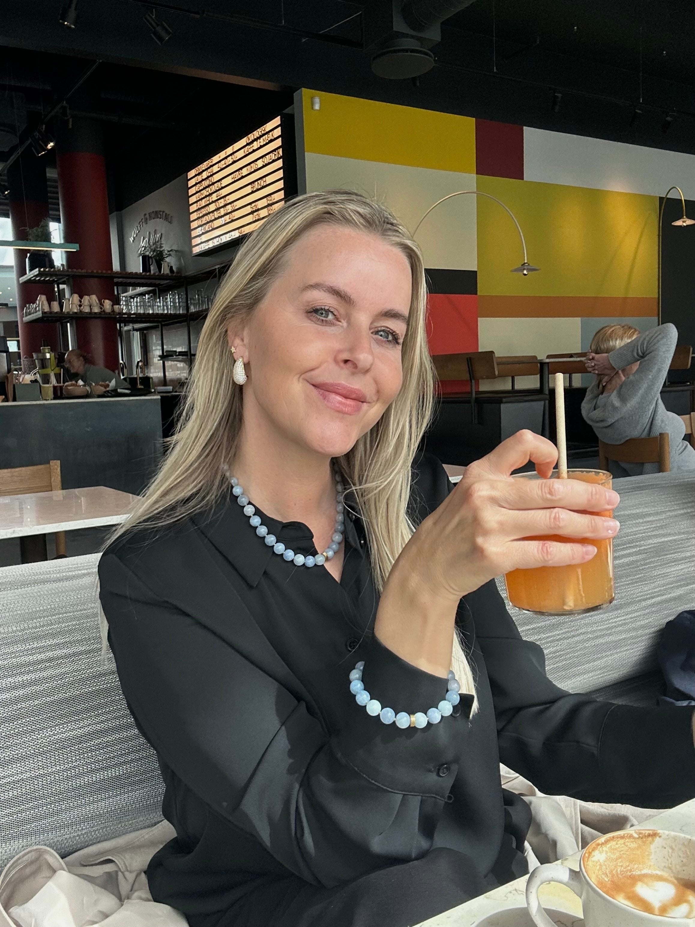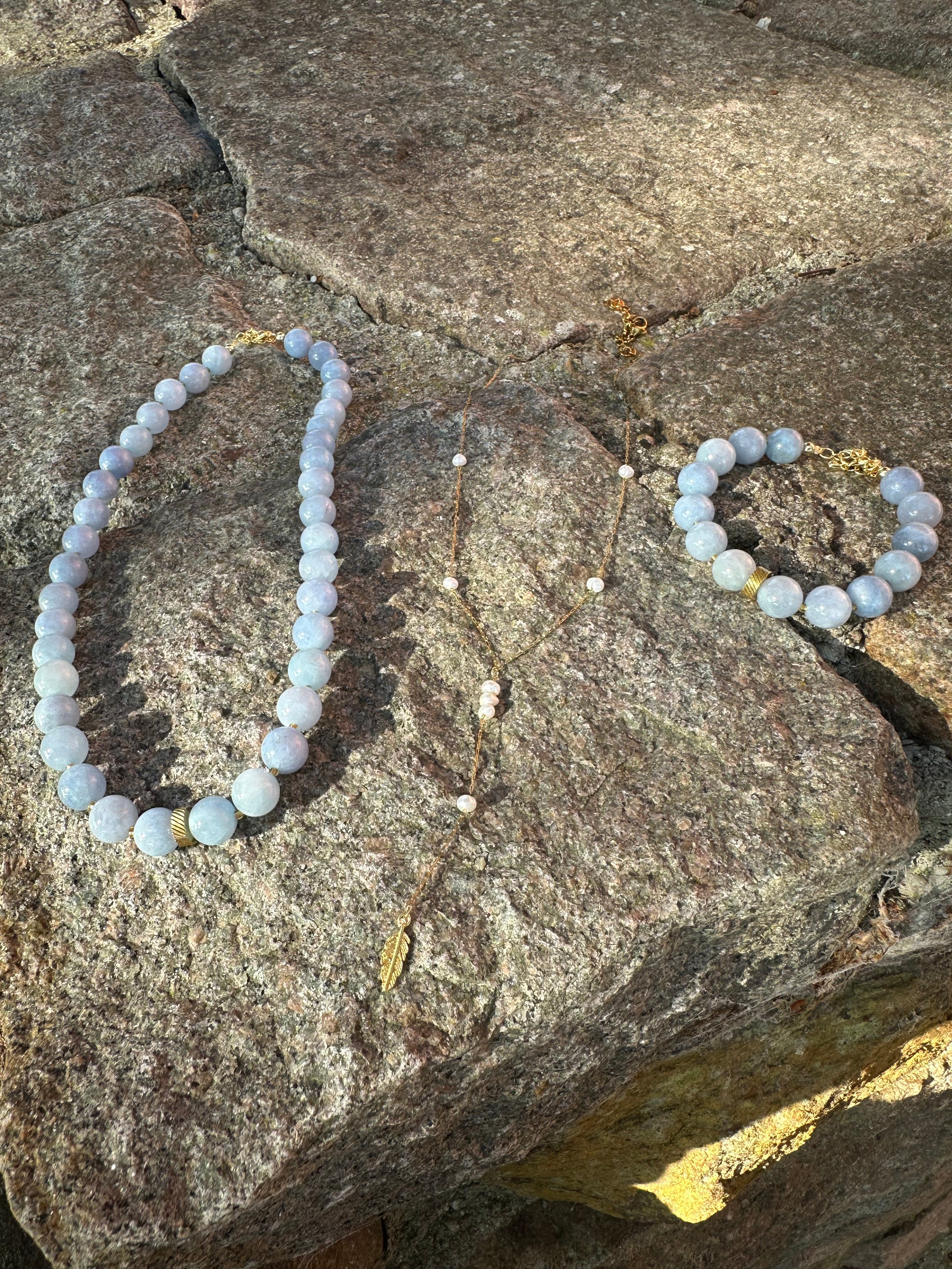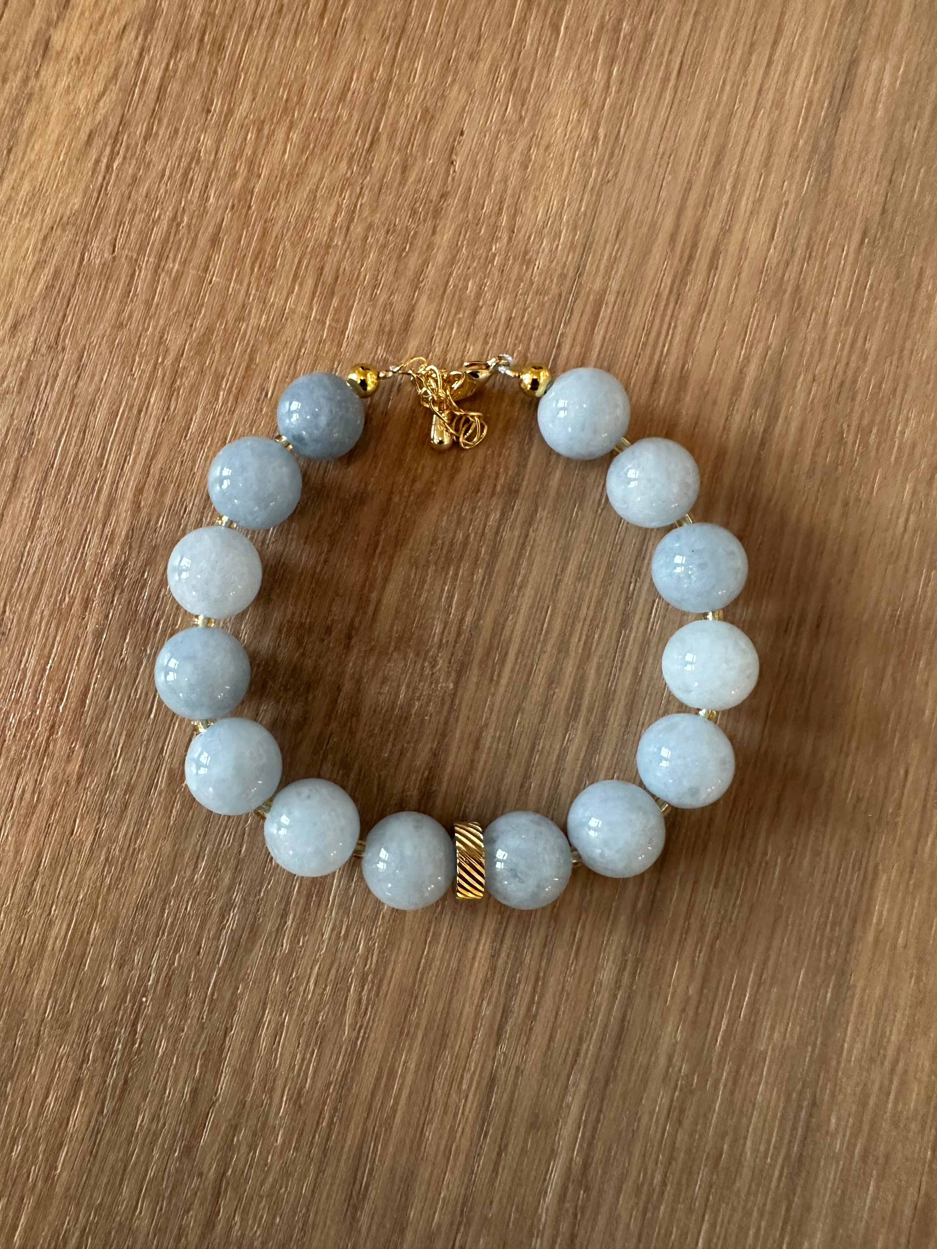 - Blåt perle armbånd af ægte Jadesten med små guld mellemled