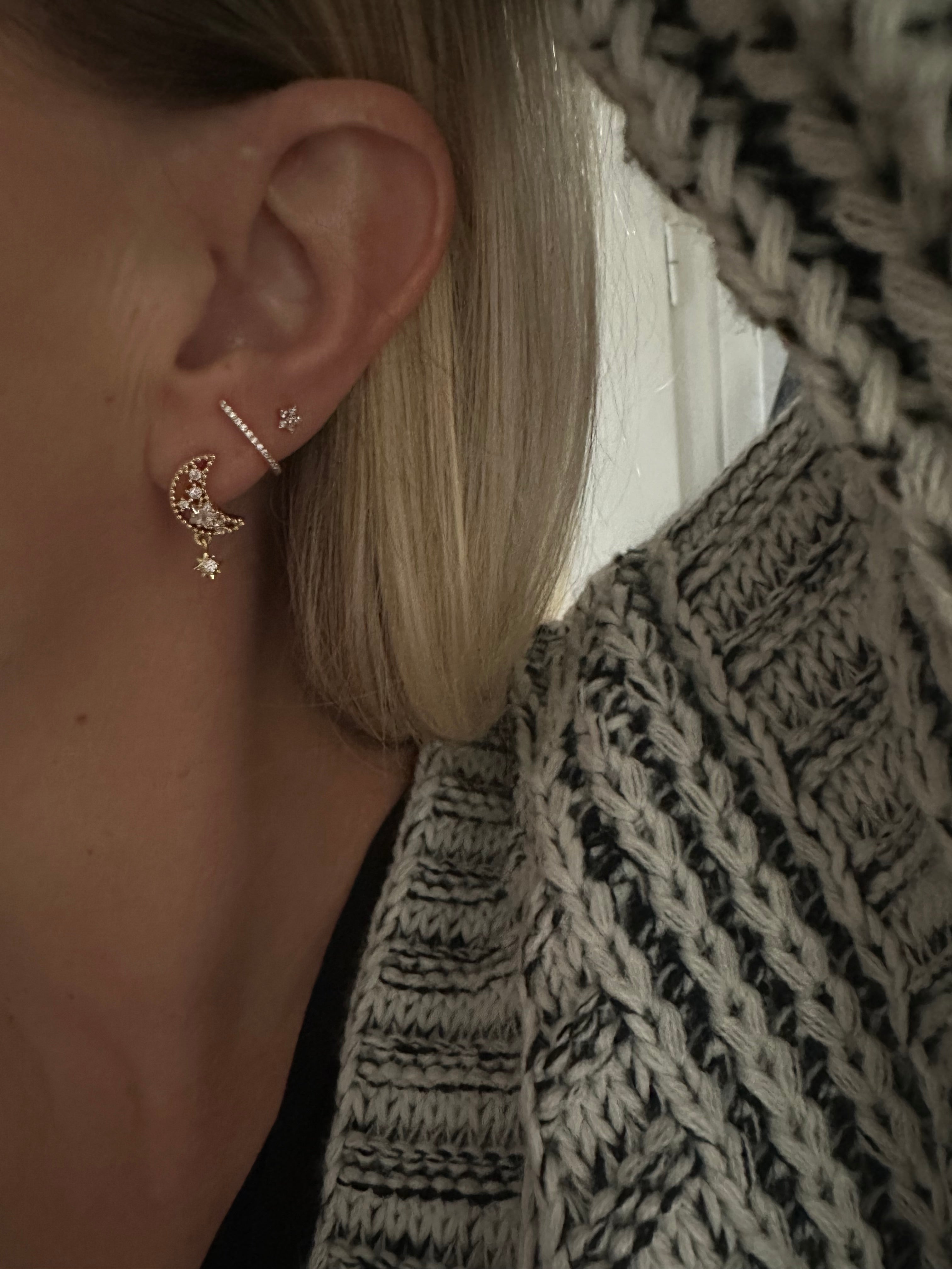 - Smukke og feminine måne øreringe som er indgraveret med små fine zirconkrystaller