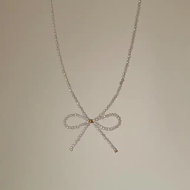 - Smuk sløjfe halskæde med små hvide krystalsten