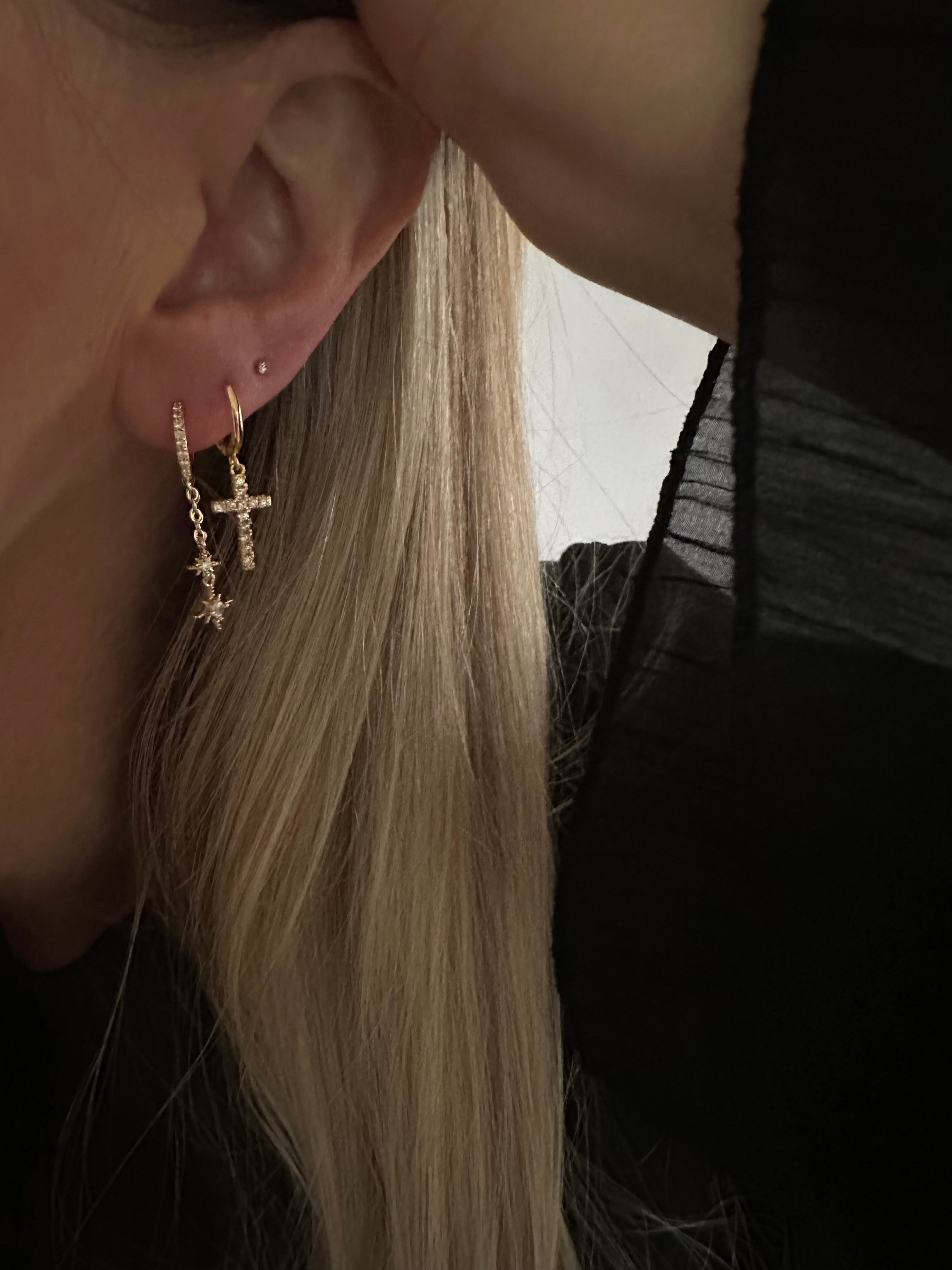• Smukke og cool kors hoop øreringe som er indgraveret med små fine zirconkrystaller
