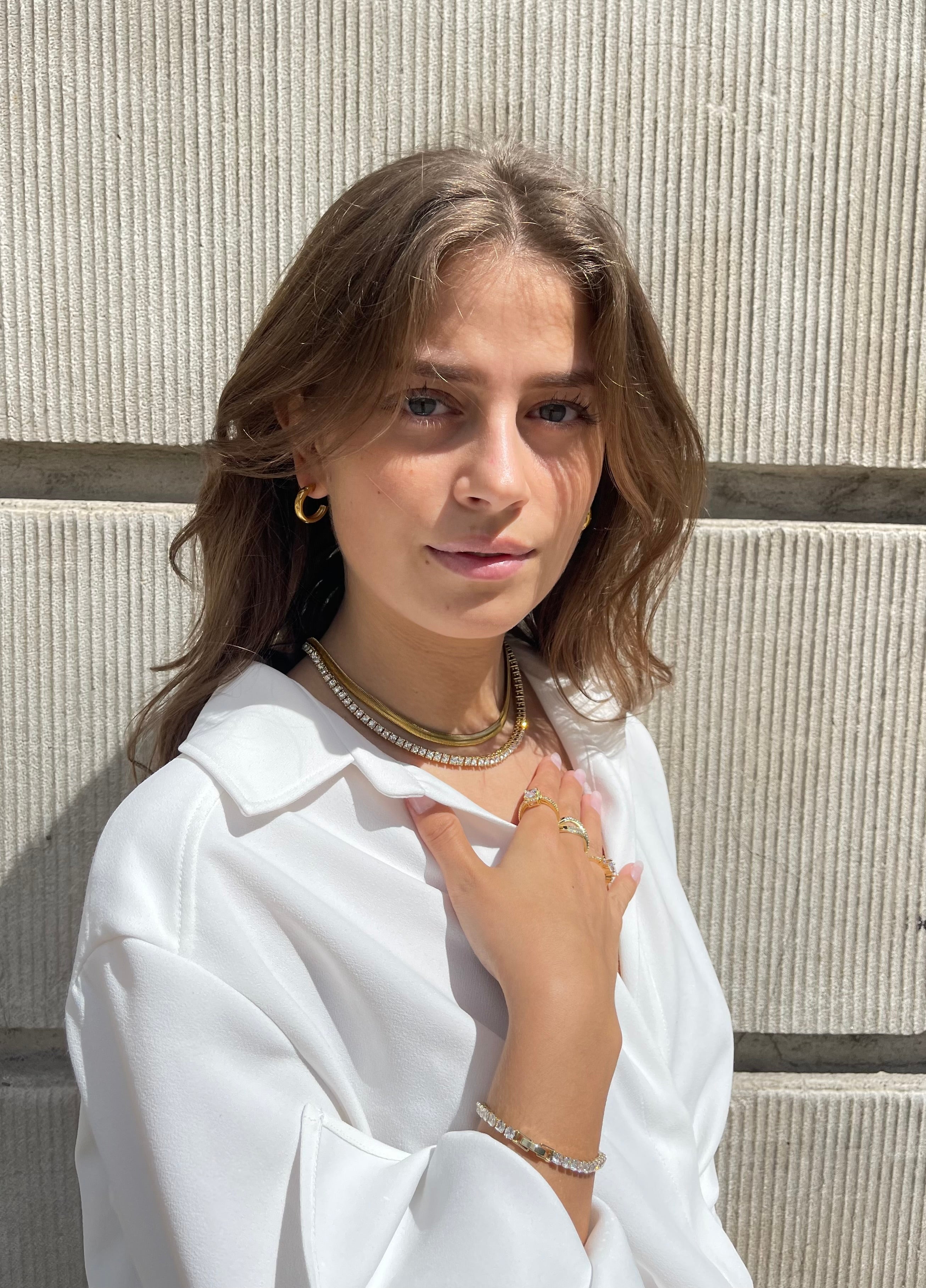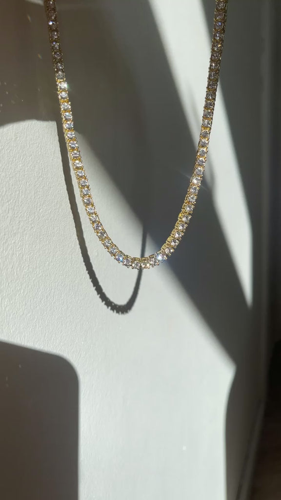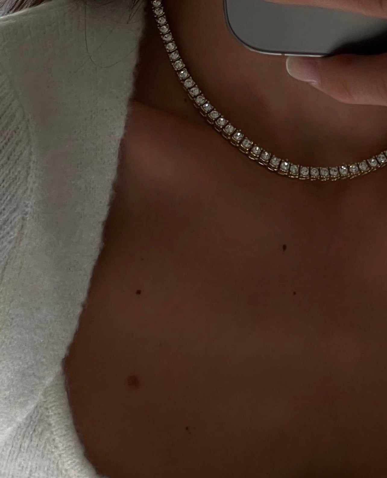 - Tenniskæden vil med tiden falme lidt på bagsiden i berøring med huden, hvilket ikke har en betydningen for kædens smukke udseende