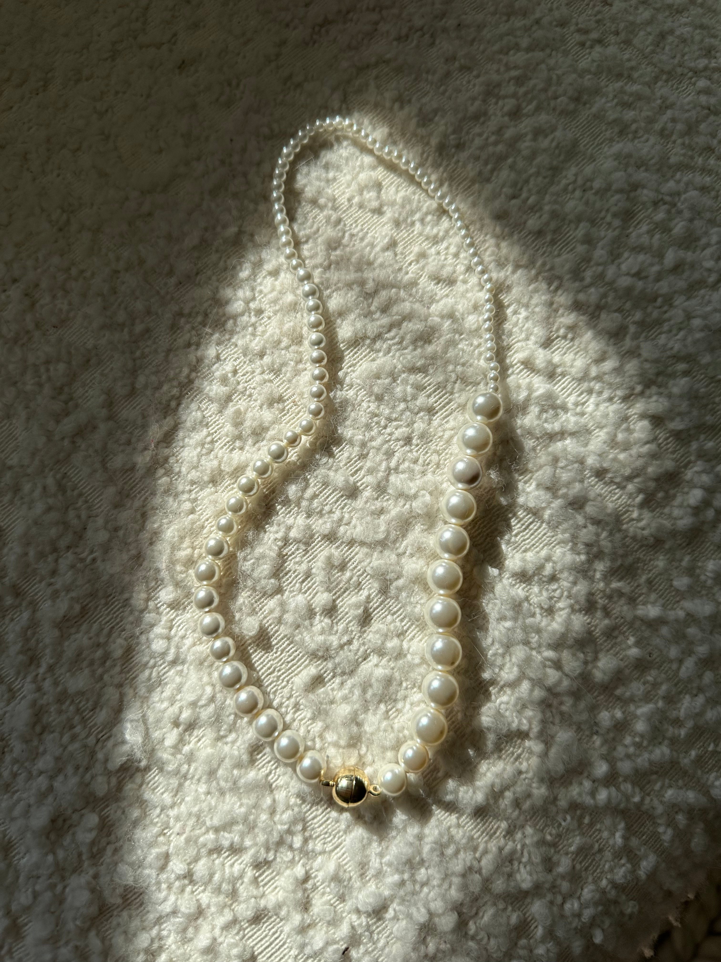 - Håndlavet perlekæde med guld magnet lås som er af forgyldt kirurgisk stål og vandfast