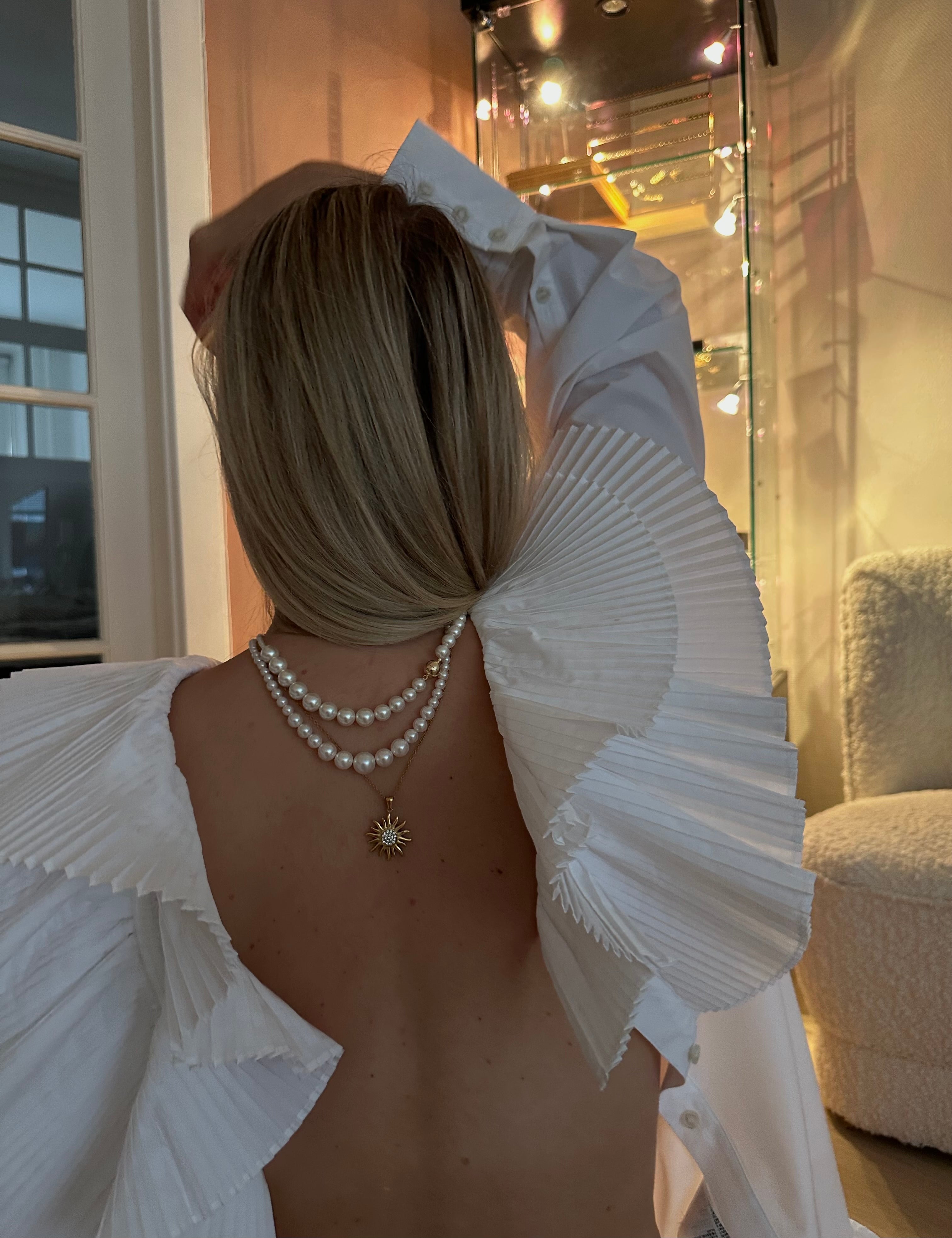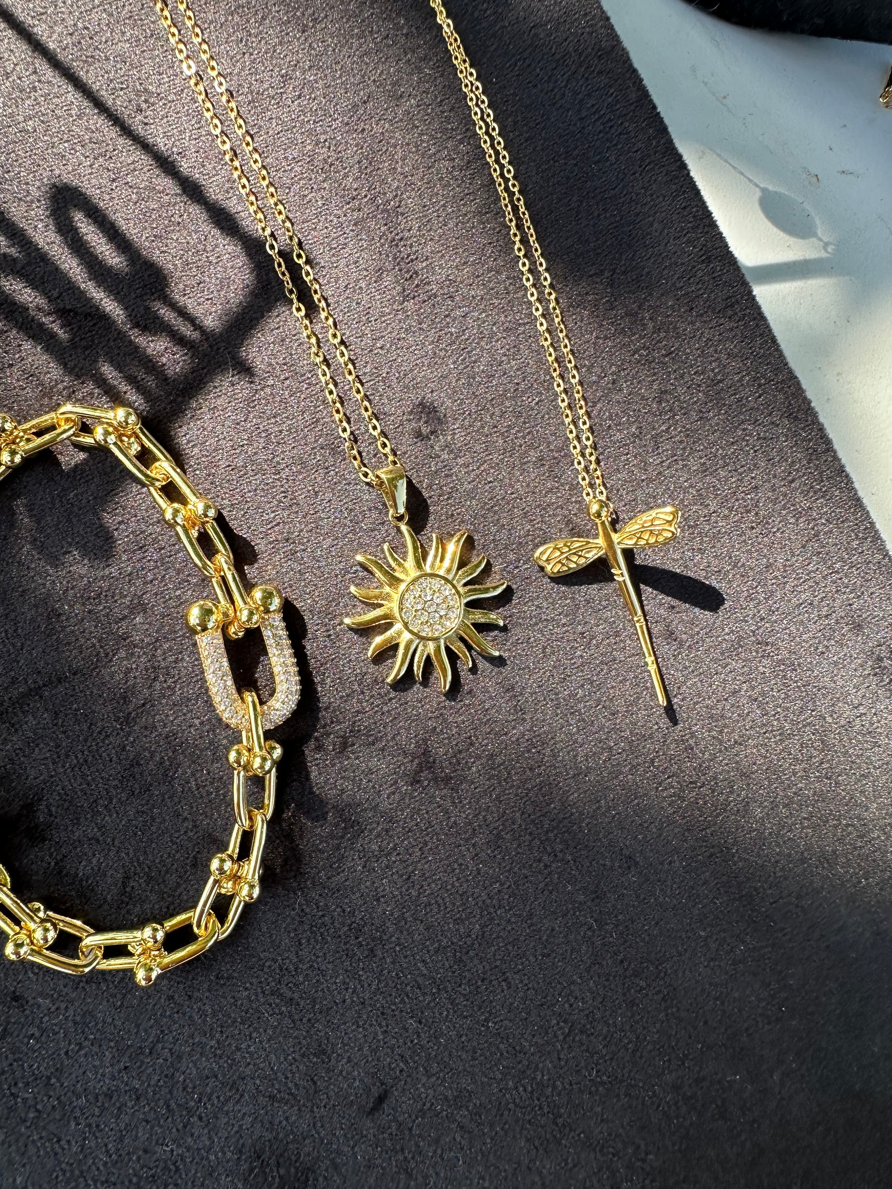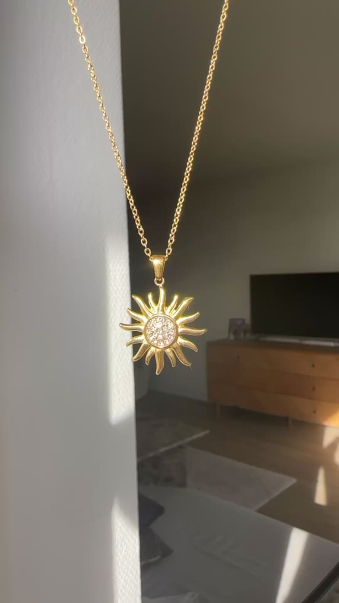 - Smuk og elegant halskæde med en sol som vedhæng, solen er indgraveret med små fine zirconkrystaller